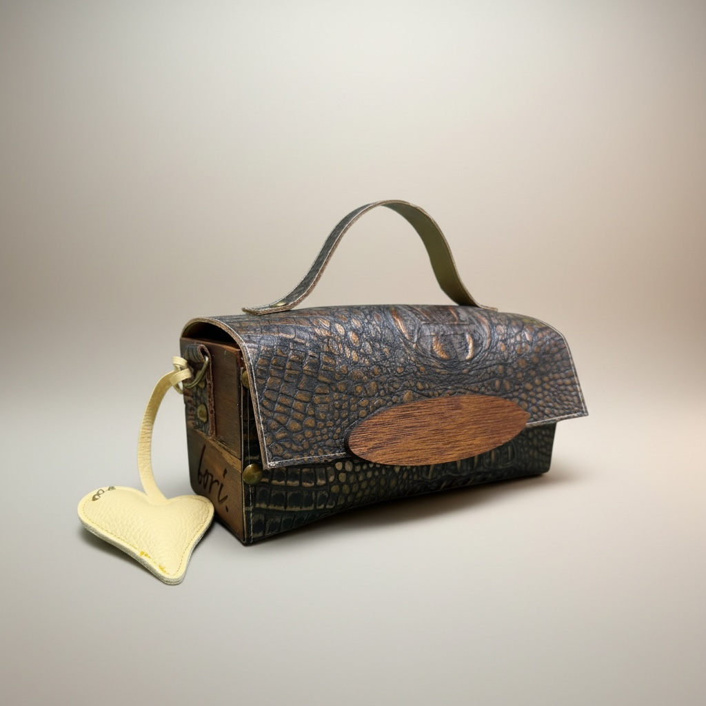 Nuestros accesorios son creados 100% por la Diseñadora y creadora de la marca Bori. Manifiesta el arte a través de piezas creadas en madera con detalles en papel, cuero.madera entre otros materiales.