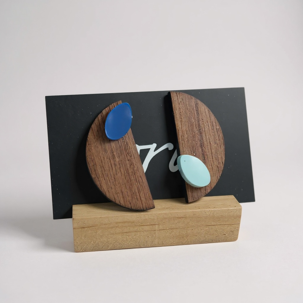 Estas pantallas están fabricadas con madera y acrílico, presentando un diseño asimétrico que se traduce en una variedad de colores. El soporte está realizado en acero inoxidable para mayor durabilidad.